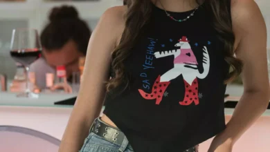 Вторым образом Ким стал костюм, не оставляющий простора для воображения. Наряд состоял из миниатюрного бра со множеством цепочек, полностью прозрачного корсета и юбки, тоже украшенной сверкающими цепями. Сопровождали аутфит черные капроновые колготки и лакированные туфли Christian Louboutin на платформе. Ким сделала необычную прическу со множеством тонких кос и нанесла дымчатый макияж.